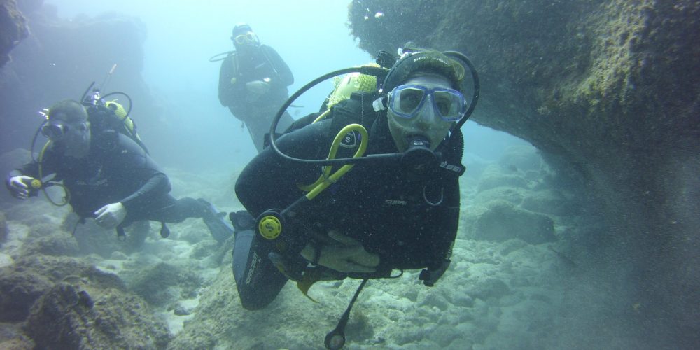 Situado a unos 25 km de nuestro club de buceo, Tajao es una visita obligada. El corto viaje en jeep o minibús nos lleva a una pequeña playa desde donde entramos fácilmente en el agua poco profunda. Después de unos 20 metros hay un saliente donde bajamos a unos 6 metros. Después de unos minutos sobre un terreno pedregoso donde a menudo nos encontramos con peces loro y pulpos, nos encontramos con una pequeña pared empinada donde bajamos a unos 12 metros. La pared, que está hecha de piedras naturales pero que parece hecha por el hombre, se extiende a lo largo de un suelo de arena blanca como la nieve.
